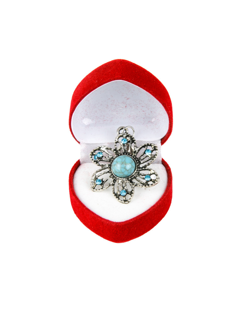 Offrez une fleur avec pierre centrale en turquoise dans son écrin de coeur