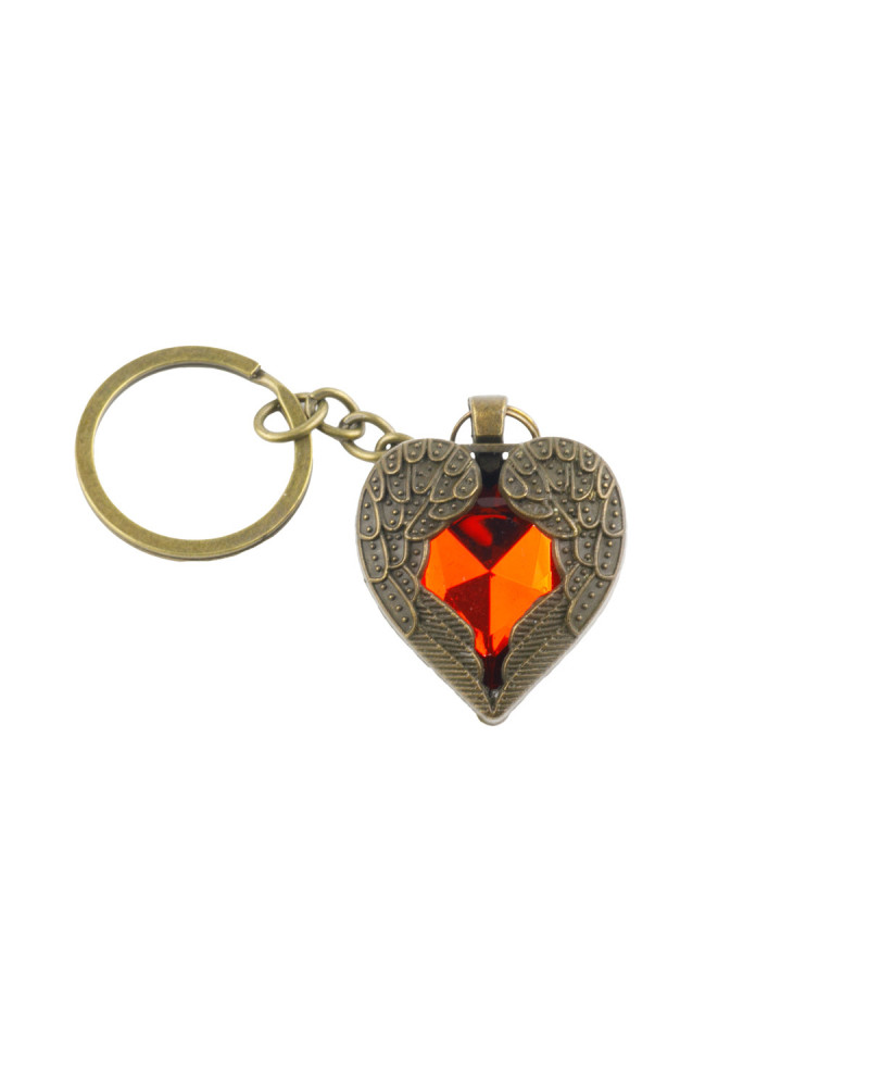 Coeur ailes d'ange et pierre centrale en porte clef