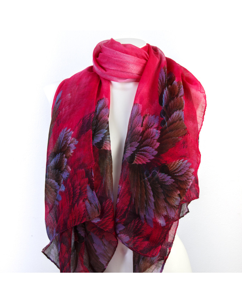 Foulard imprimé rose et bleu à feuilles