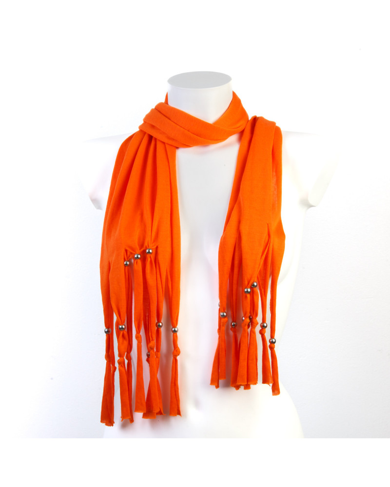 Foulard orange en coton, franges