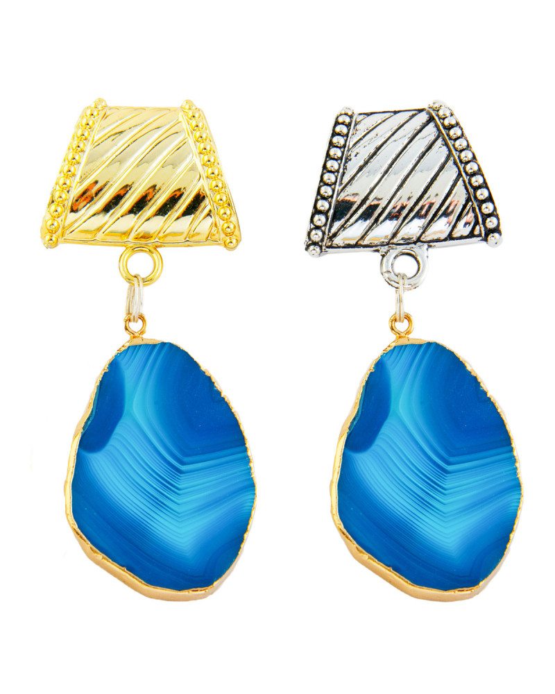 Bélière attache foulard, pierre agate bleue