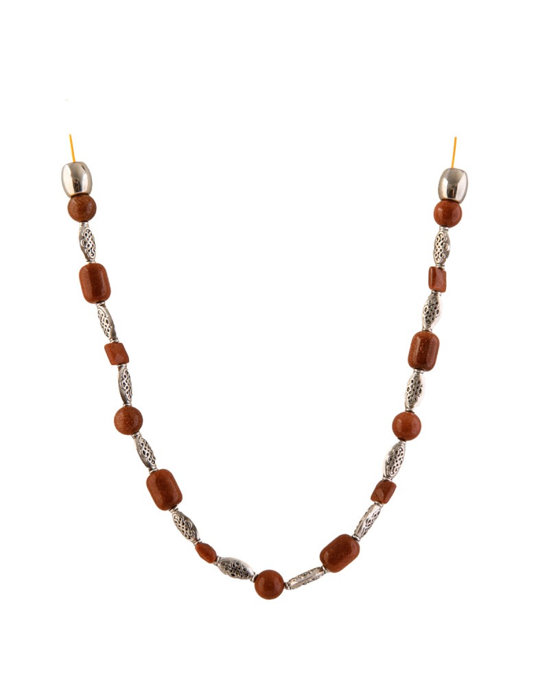 Collier en pierres et perles marron du soleil
