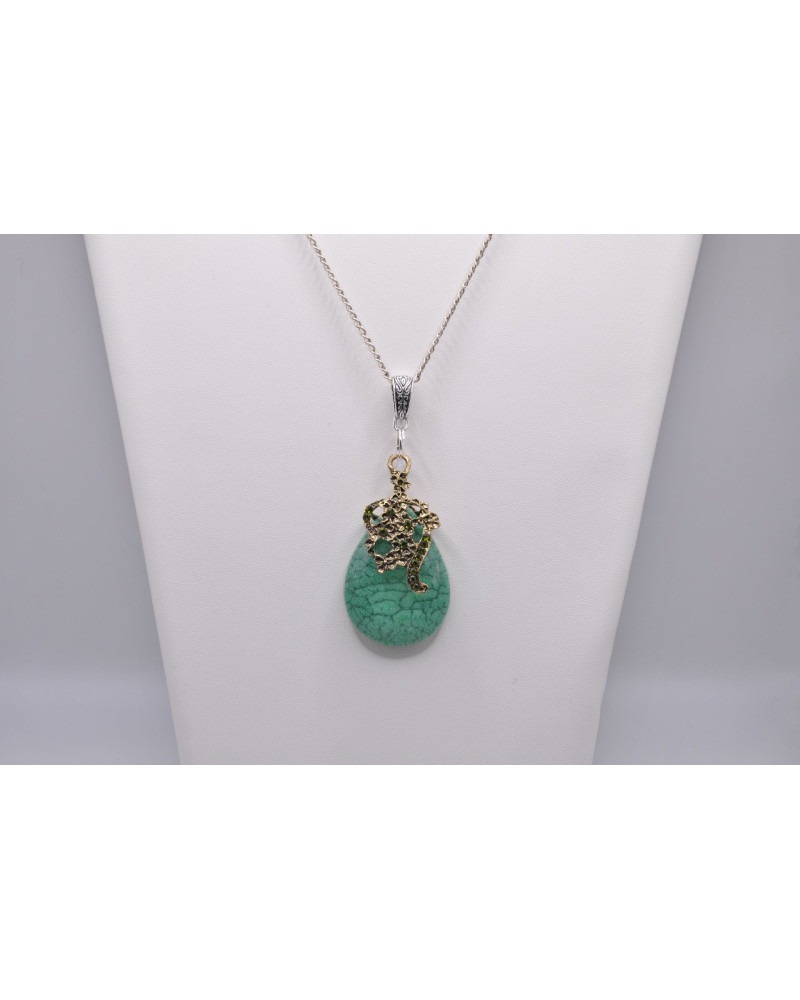 Pendentif forme de visage de profil ciselée, posée sur pierre verte