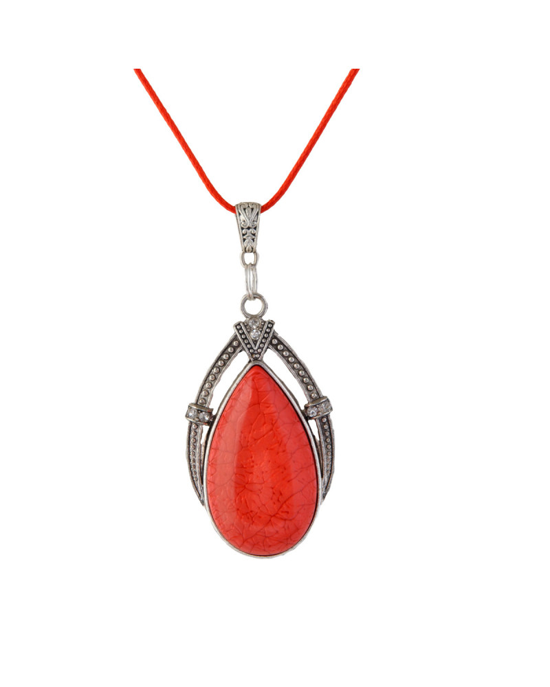 Pierre orangée ornée de bordure d'argentée, cordon rouge orangé