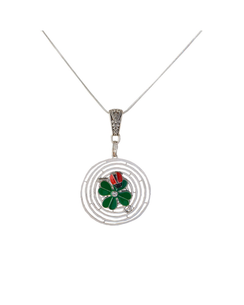 Porte bonheur très à 4 feuilles coccinelles, sur médaillon
