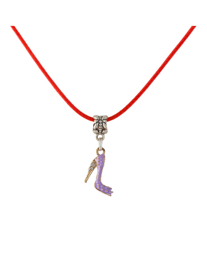 Mini chaussure parme décorative en pendentif, cordon rouge