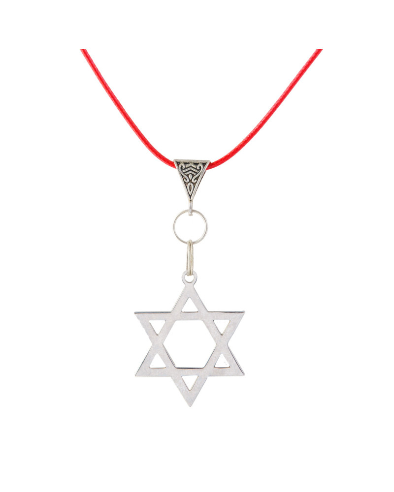 Etoile de David argenté, cordon rouge