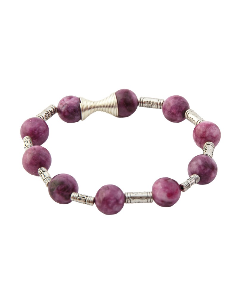Bracelet perles de tourmaline, intercalées de perles argentées