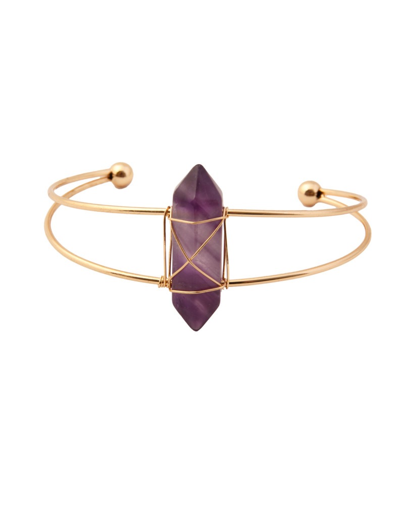 Bracelet double cercles, d'améthyste enlacée de fil doré