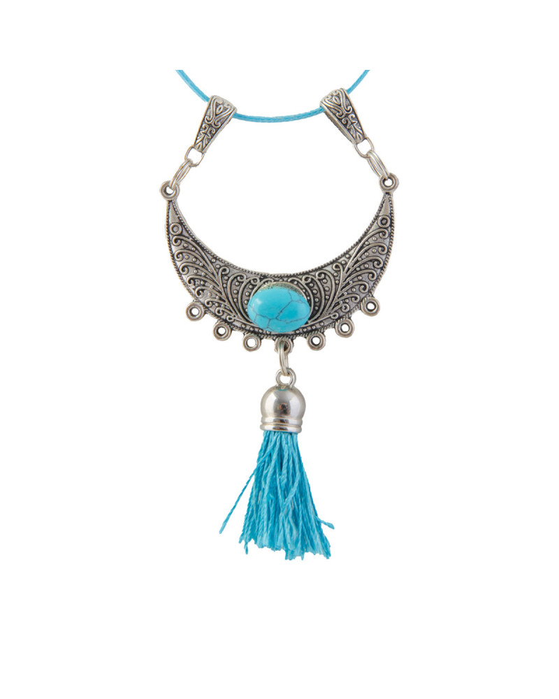 Pierre turquoise, pendentif pompon