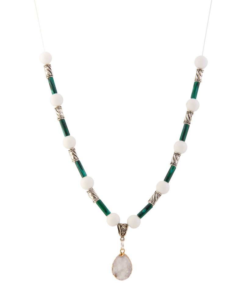 Collier en perle de jade et pierres de malachite, symbole pierre de druzy