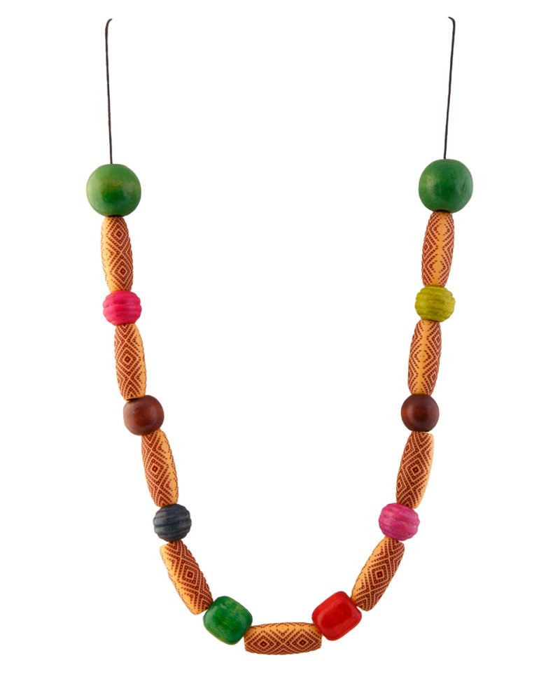 Collier perles en bois multi formes et couleurs