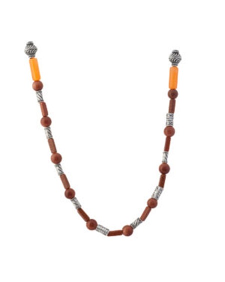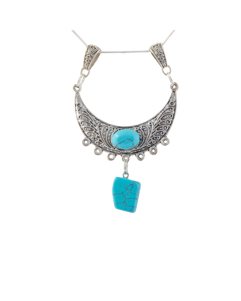 Pierre et perle de turquoise sertie, collier argenté