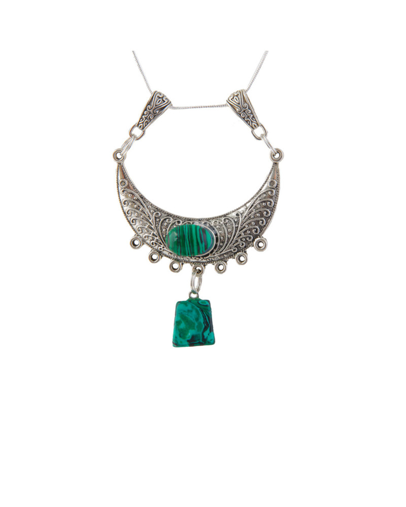 Pierre et perle de malachite œil du tigre collier