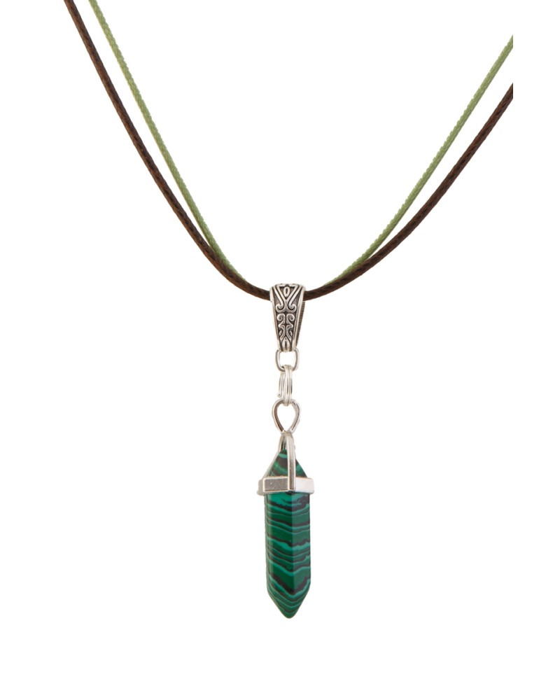 Pierre en malachite forme pendule, double cordons marron jaune