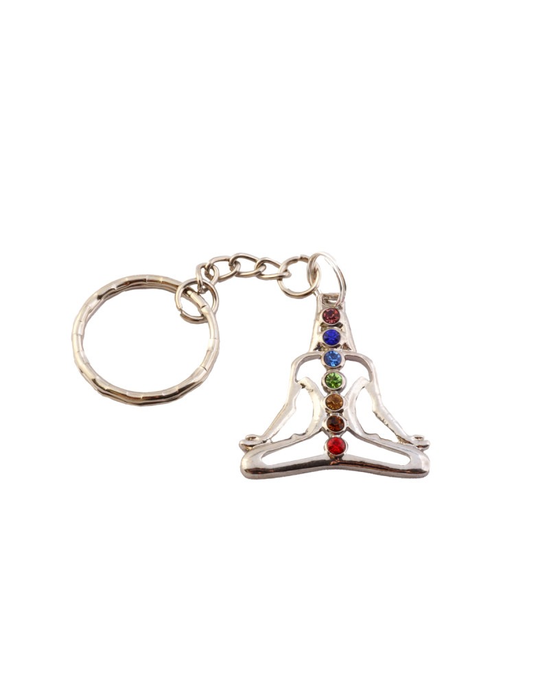 Porte clef bouddha argenté, perles chakras, lotus.