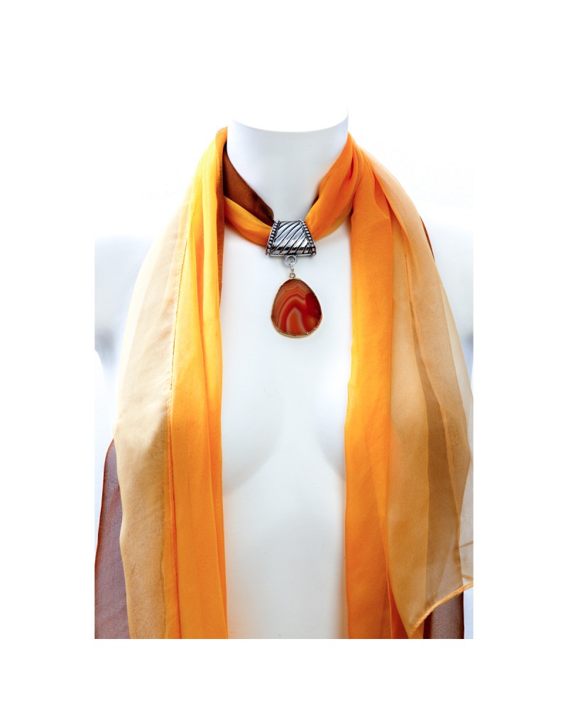 Foulard en soi jaune orangée, pierre naturelle Agate