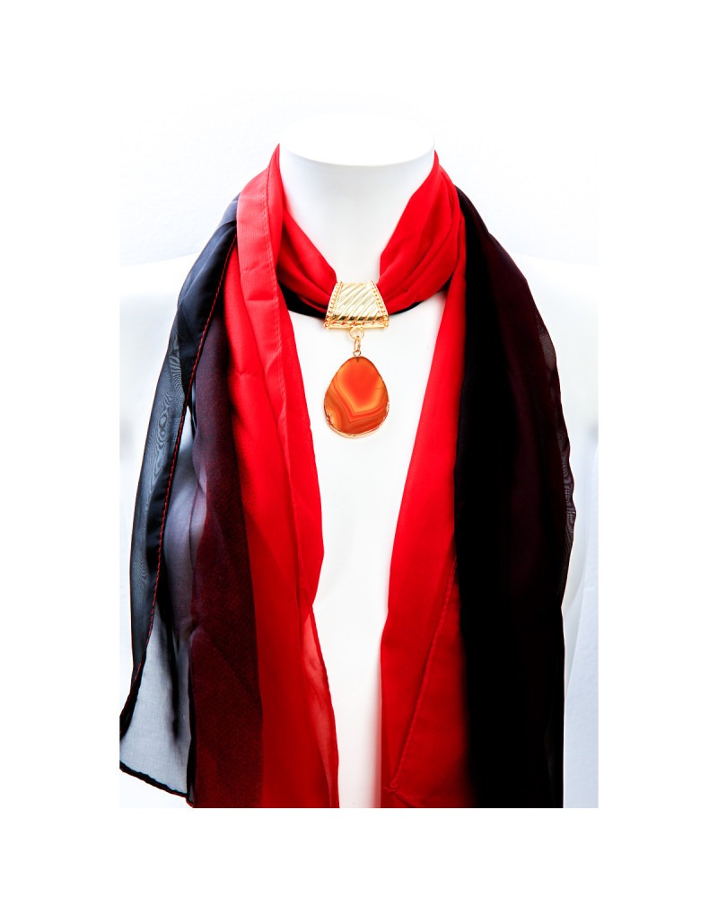 Foulard rouge et noire, pierre d'agate orange