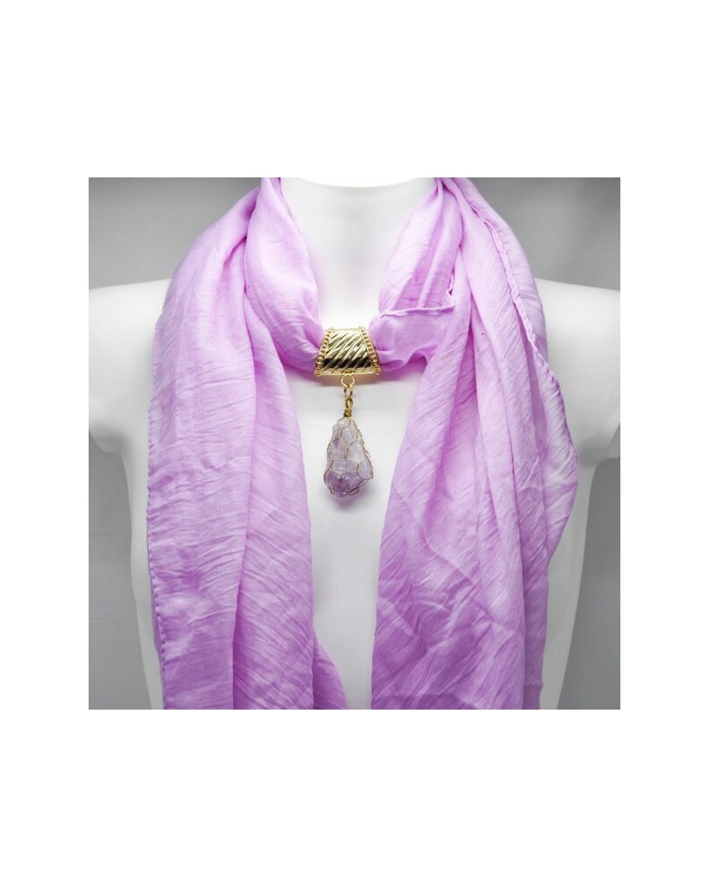 Foulard parme en lin, bélière et pierre naturelle