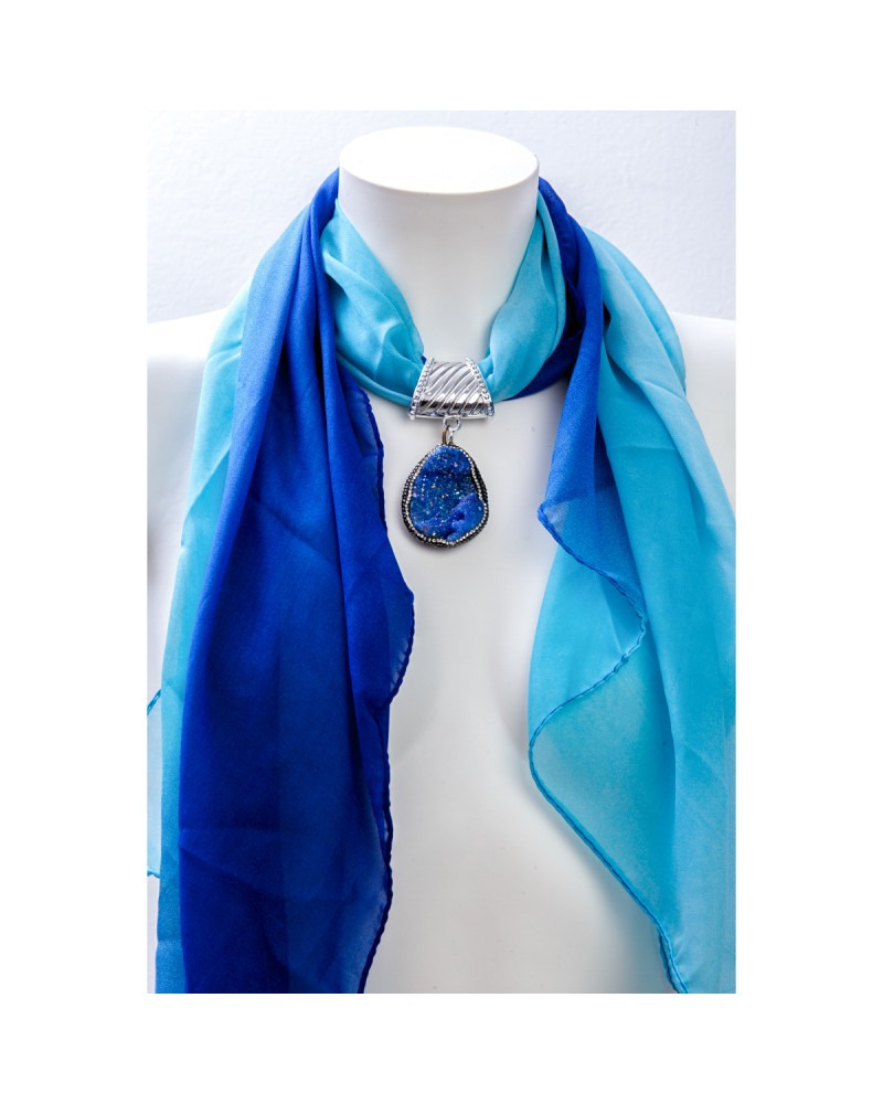 Pierre druzy bleue, foulard bleu dégradé