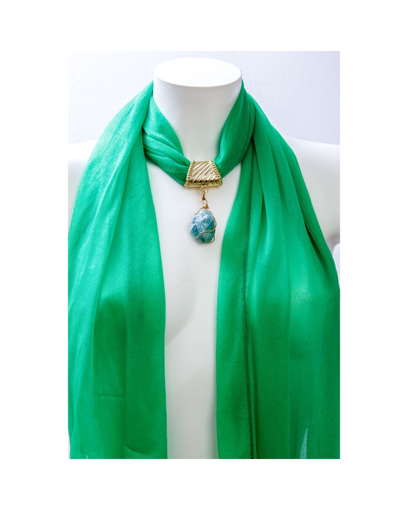 Pierre apatite sertie de fil doré, foulard vert scintillant