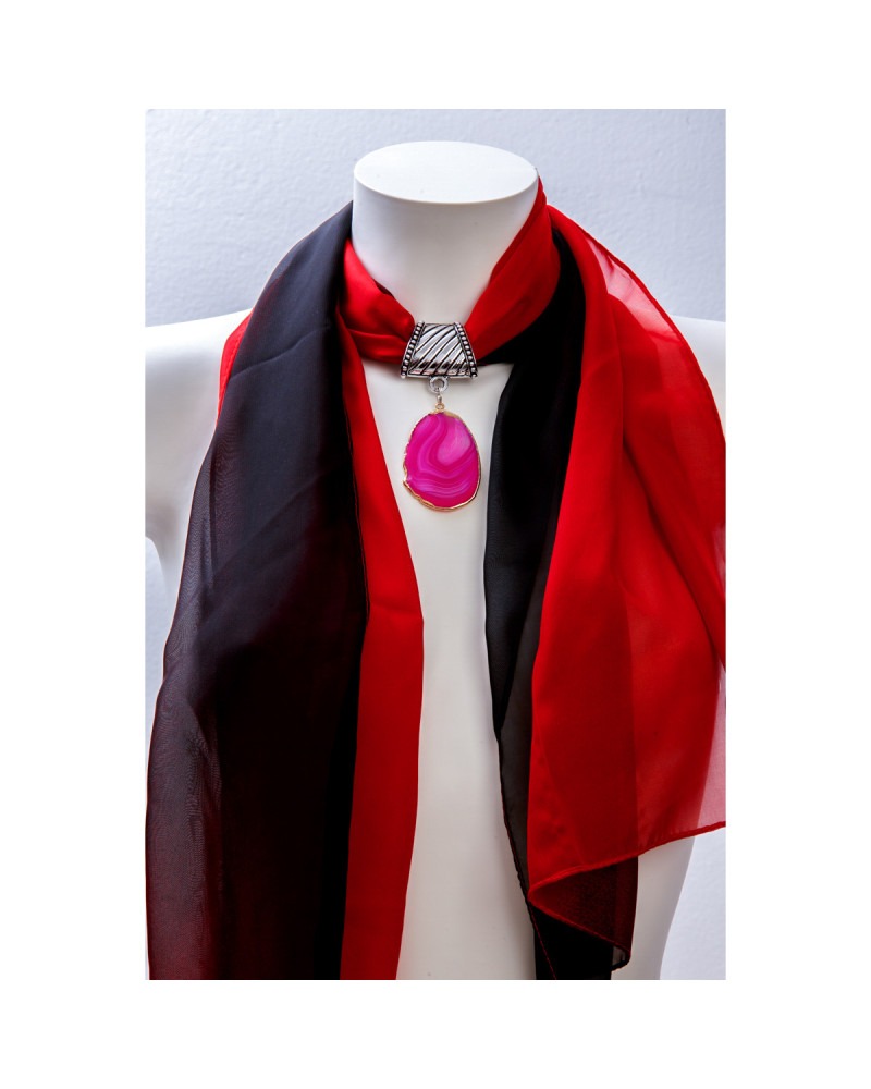Pierre d'agate rose, foulard rouge et noir