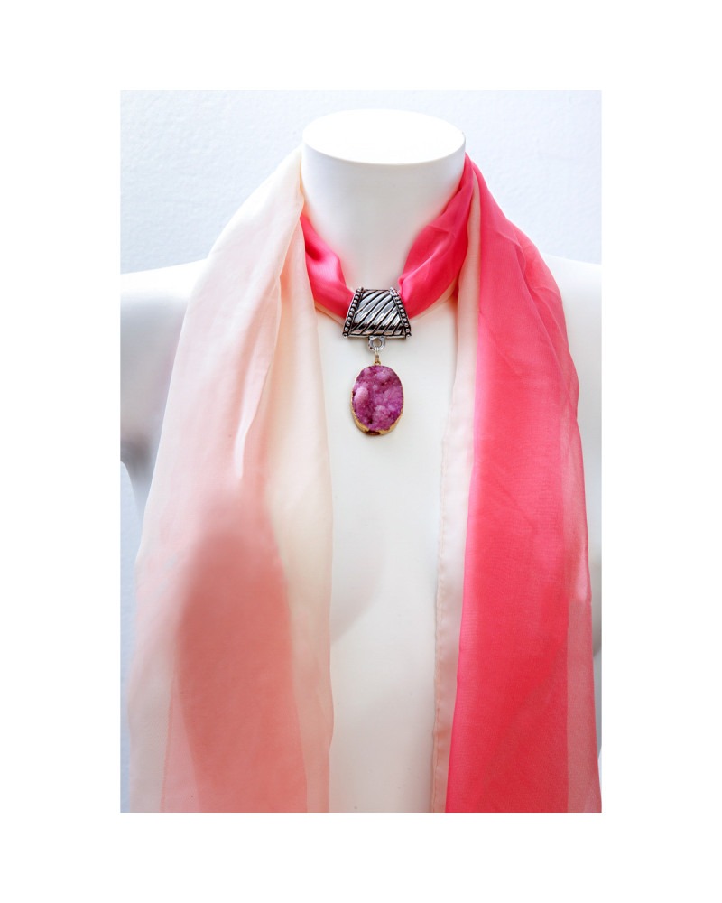 Pierre druzy, foulard dégradé, saumon rose