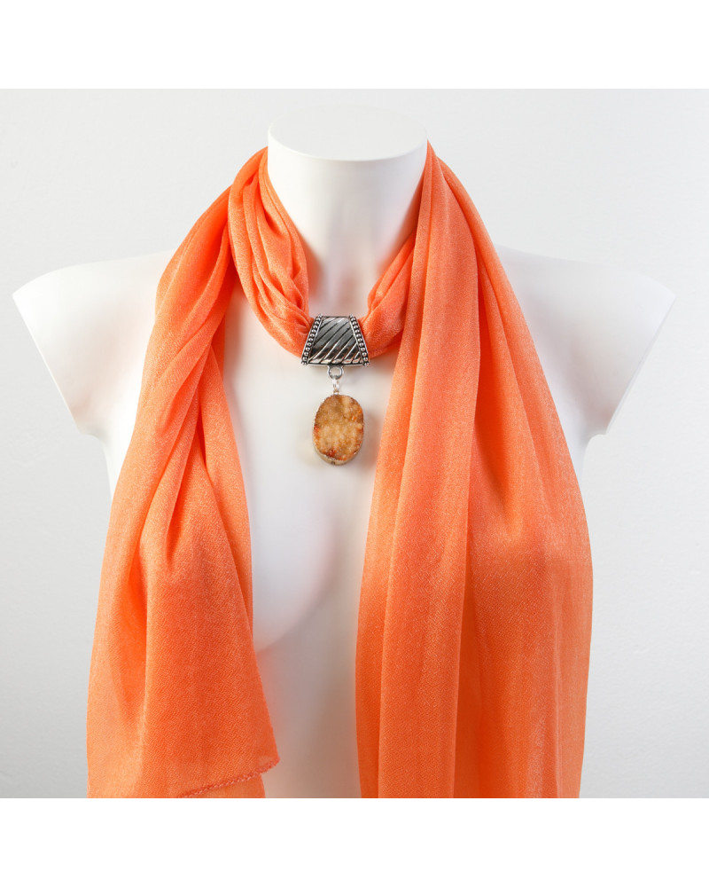 Foulard scintillant orange, pierre druzy orangée