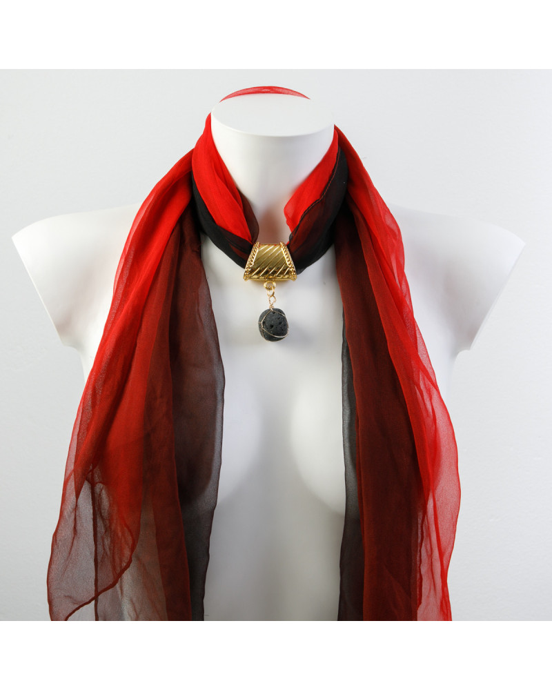 Foulard dégradé noir et rouge pierre de lave ( volcanique) sertie de fil doré