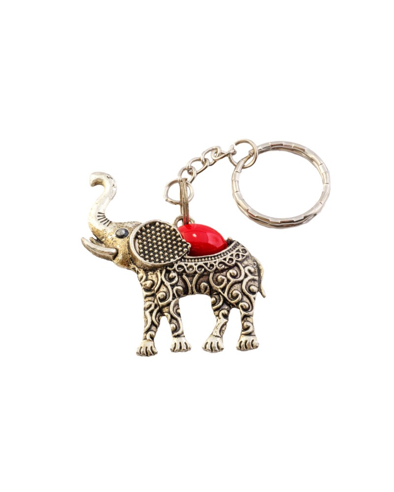 Porte clef Eléphant, orné de pierre rouge.