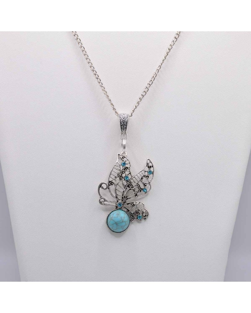 Papillon argenté perlé, et sa pierre de turquoise