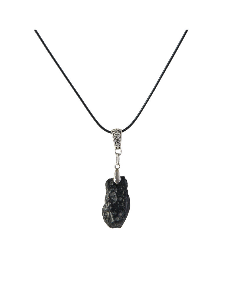 Pierre météorite , énergie cosmique, pierre porte-bonheur, cordon noir