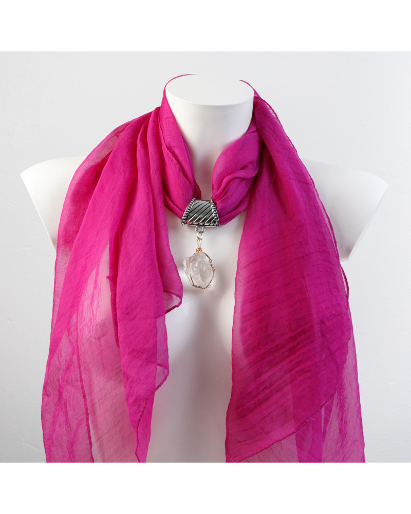 Pierre en quarz rose serti de fil doré, foulard en soie violet