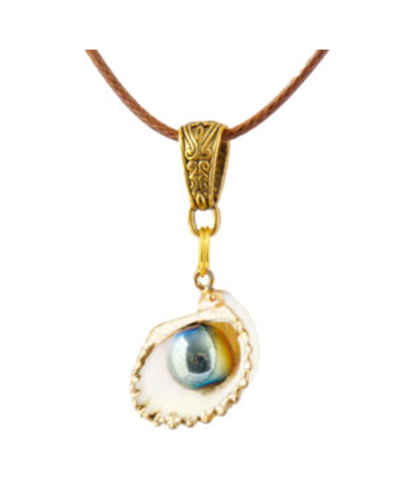 Perle d'hématite dans son écrin de coquille, cordon marron