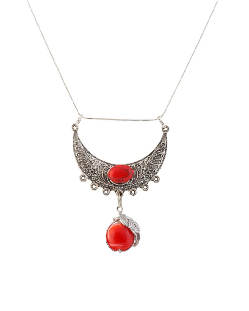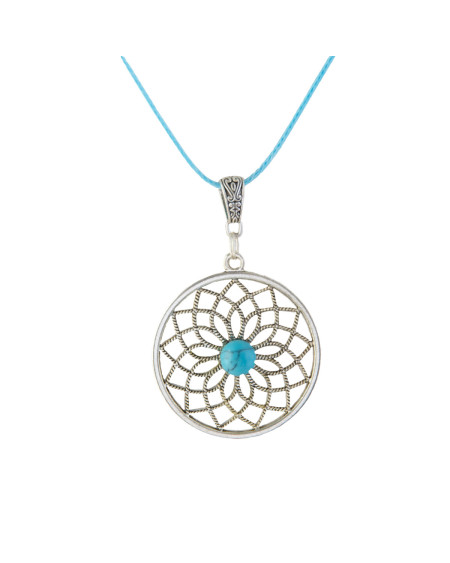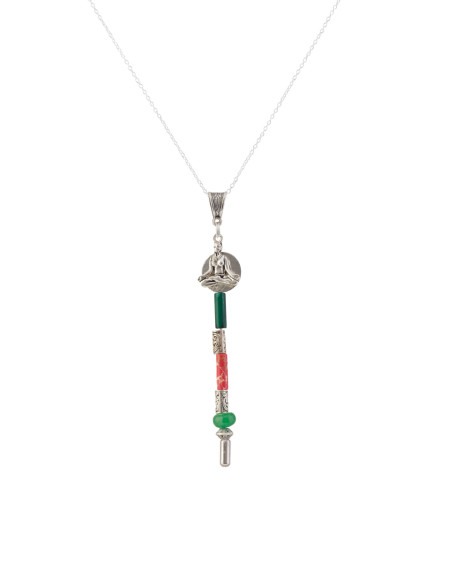 Pierres sur pendentif en arc ciselé, chaine en argent