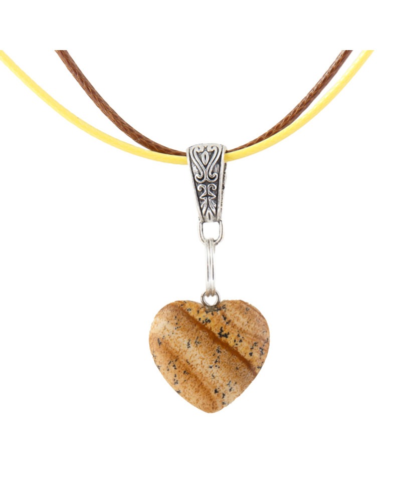 Pierre jaspe en forme de coeur , double cordons jaune et marron