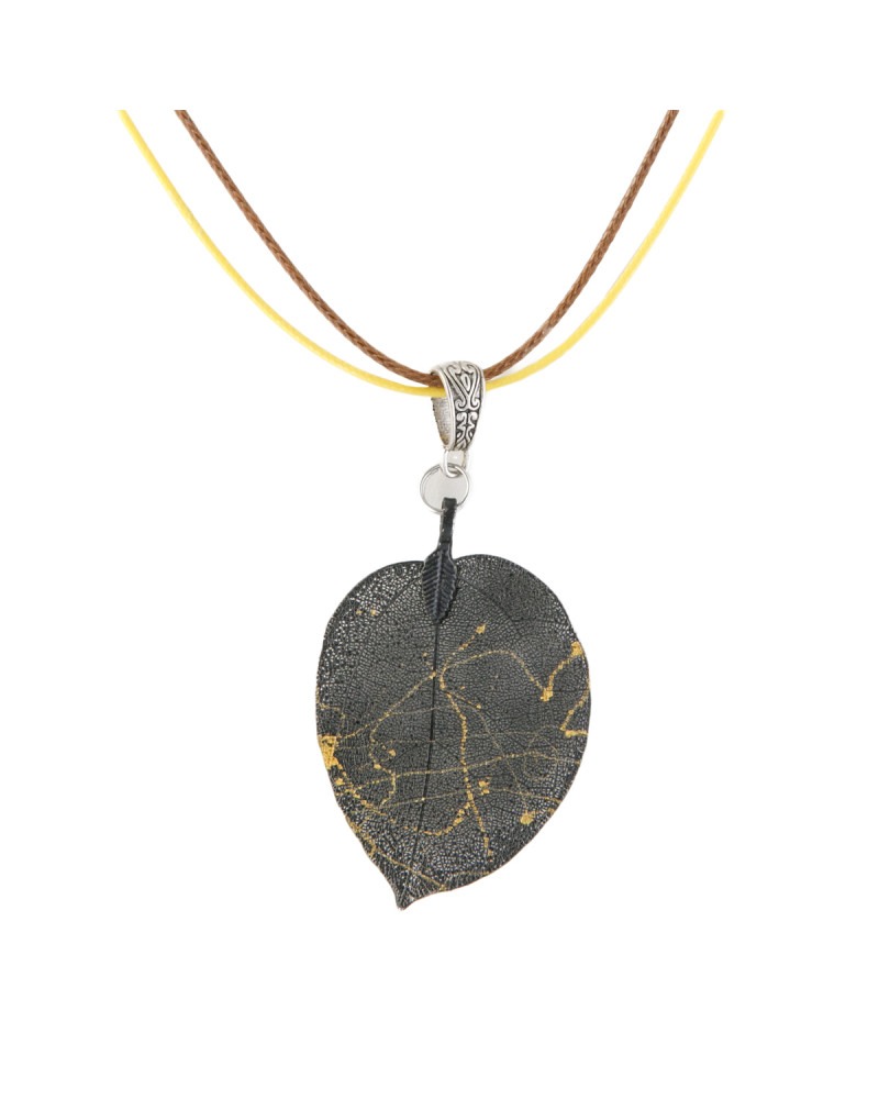 Médaille feuille noire et dorée, double cordons jaune et marron