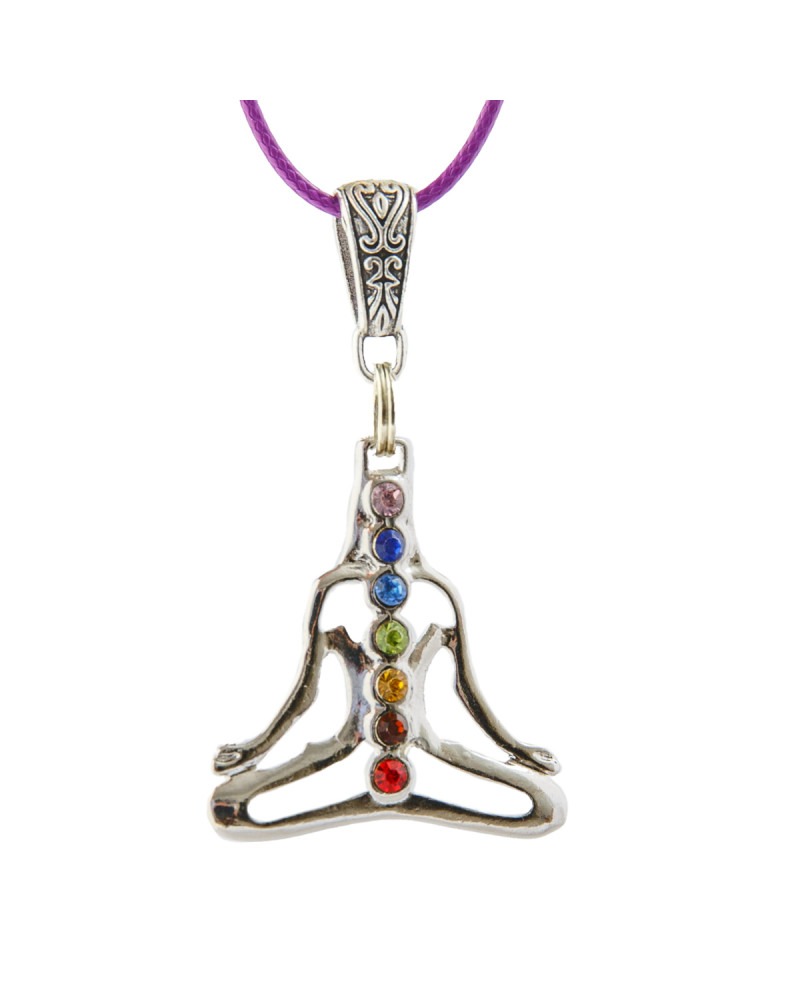 Chakras Bouddha argenté, cordon violet