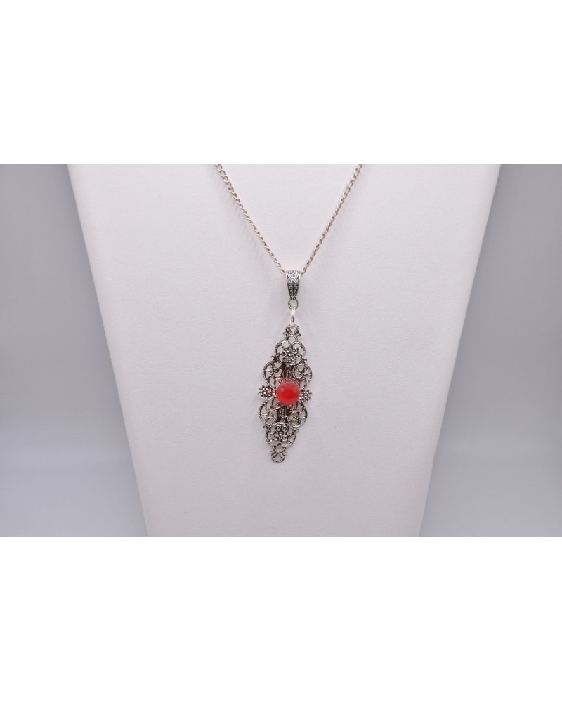 Pendentif perle rouge de jaspe présentée sur feuille en filigrane