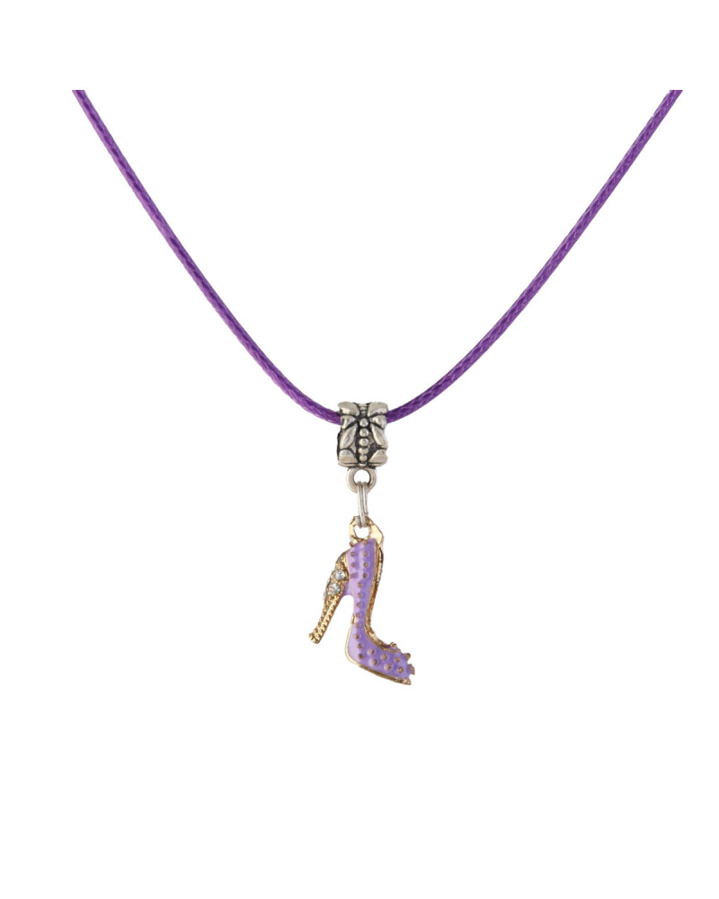 Mini chaussure décorative en pendentif, violette, cordon violet