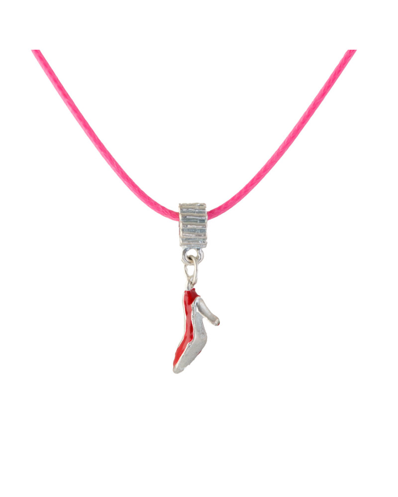 Mini chaussure rouge et argent, décorative en pendentif, cordon rose