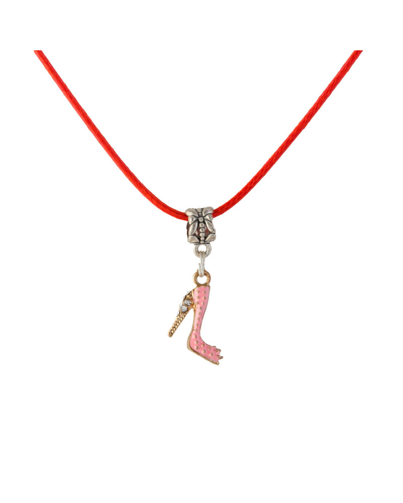 Mini chaussure saumon décorative en pendentif, cordon rouge