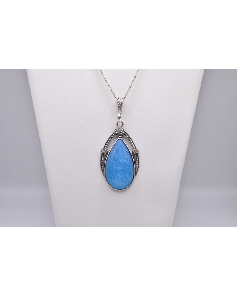 Pierre bleue ciel, médaille montée sur bélière argentée